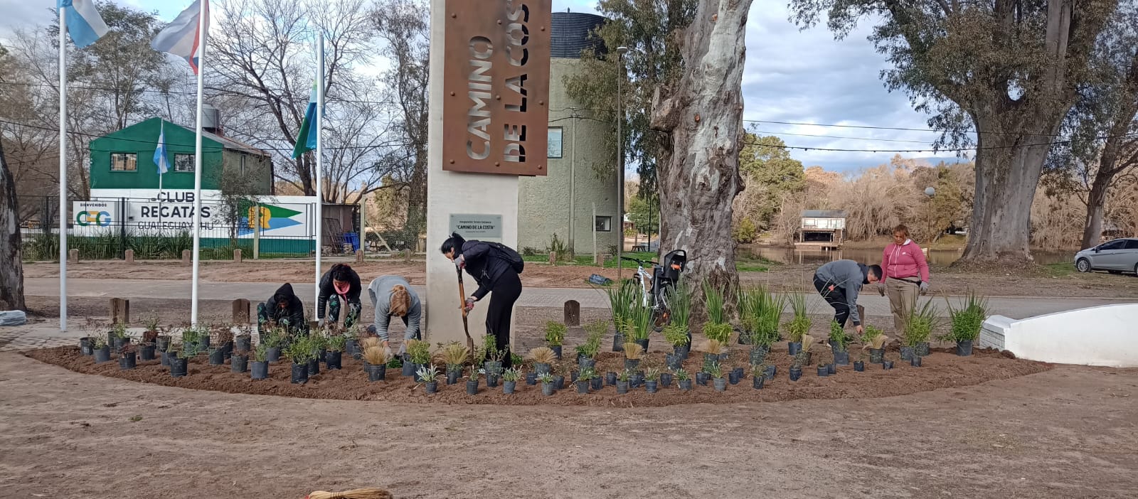 La Municipalidad continúa con la puesta en valor del paisaje urbano mediante la plantación de flora autóctona en sectores claves como el Parque Unzué y el ingreso a la ciudad.