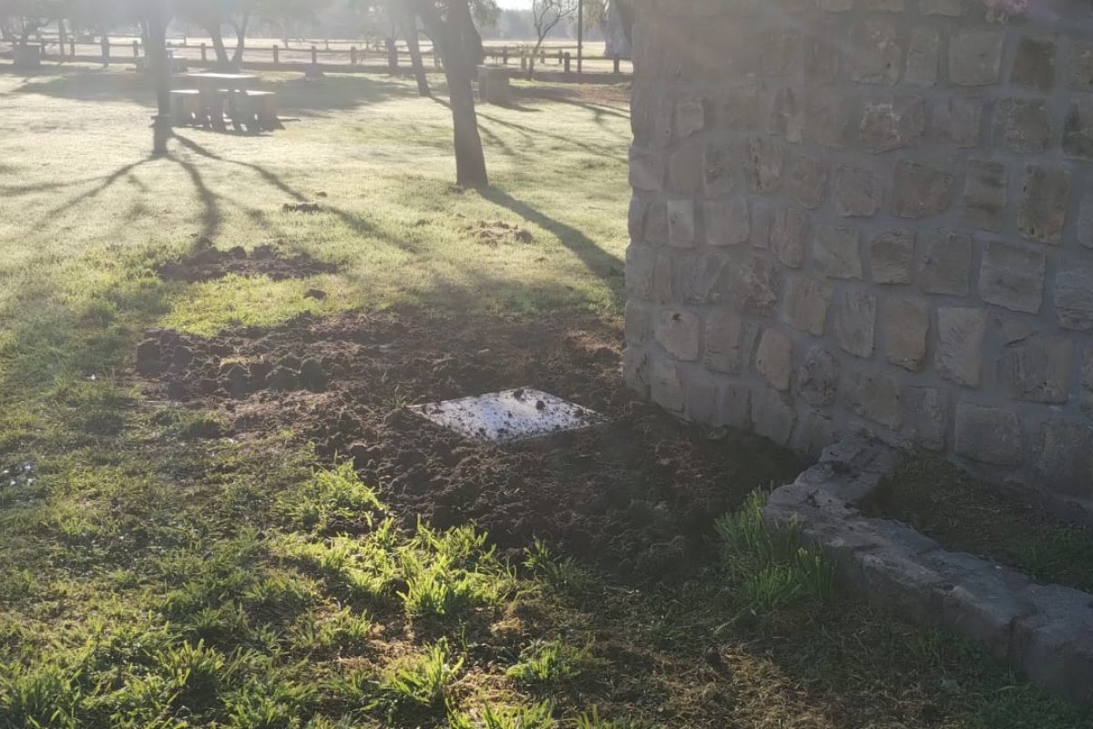 Entre las intervenciones realizadas, se destaca el relleno y emparejamiento de las cámaras sépticas recientemente instaladas en los baños públicos, con el objetivo de optimizar su funcionamiento y garantizar mayor seguridad para quienes transitan por el lugar.