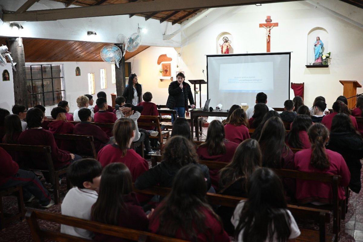 En el marco de las acciones de prevención y promoción de derechos, el Área de Niñez, Adolescencia y Familia (ANAF) llevó adelante una charla en el Colegio Sagrado Corazón destinada a estudiantes, docentes y miembros de la comunidad educativa. El objetivo fue reflexionar sobre el acoso entre pares y promover herramientas de prevención e intervención.