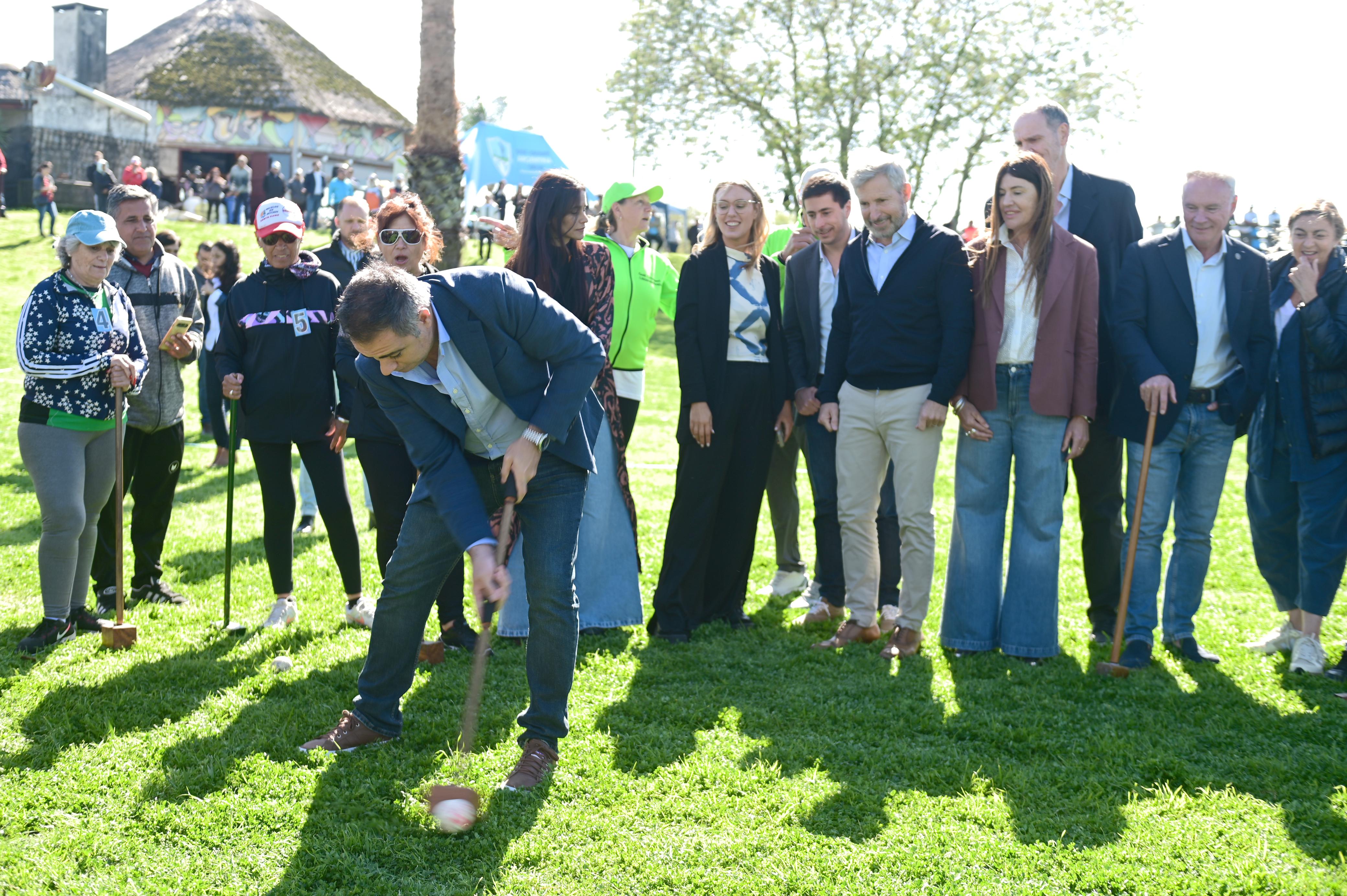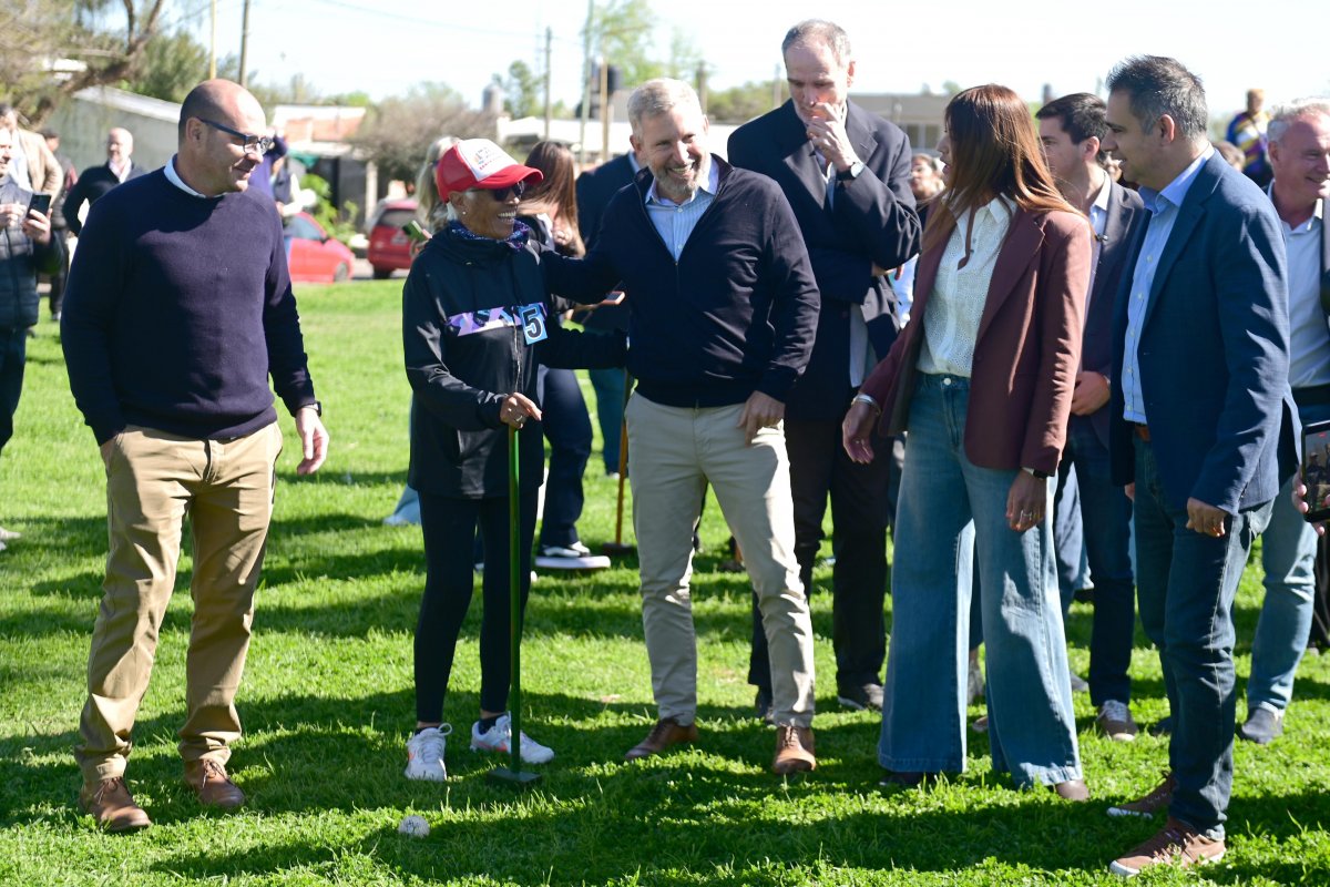 El gobernador Rogelio Frigerio y el intendente Mauricio Davico recorrieron el predio del Centro Cultural “Luis María Luján” acompañando la jornada de golf-croquet. También estuvieron presentes la viceintendenta, Julieta Carrazza; el ministro de Planeamiento, Infraestructura y Servicios de Entre Ríos, Darío Schneider; el secretario de Deportes de Entre Ríos, Sebastián Uranga; la presidenta del Consejo General de Educación, Alicia Fregonese; el jefe de Gabinete, Luciano Garro; el secretario de Gobierno y Modernización, Manuel Olalde; el secretario de Desarrollo Humano, Juan Ignacio Olano; el subsecretario de Cultura, Deportes y Juventud, Luis Castillo; el subsecretario de Turismo, Fernando Zubillaga y el director de Deportes, Raymundo Legaria