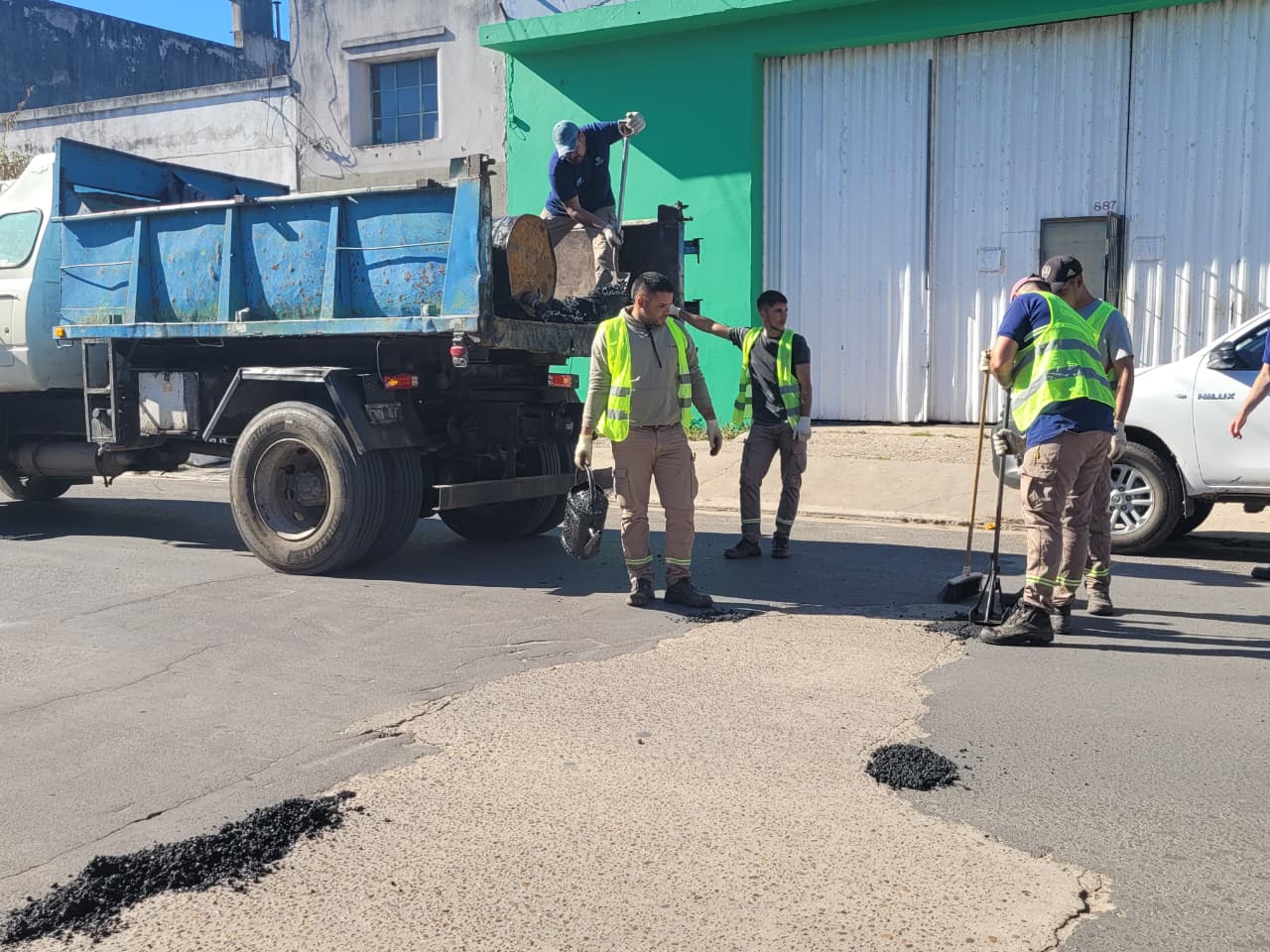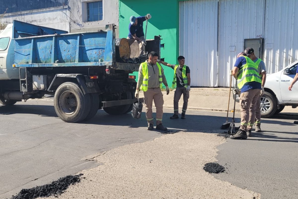 El Municipio realizó mantenimiento vial en la zona del club Tiro Federal y otros sectores de la ciudad