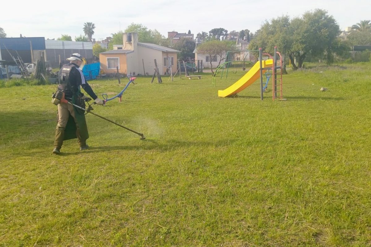 En este contexto, se realizaron trabajos de corte de pasto en el Paseo La Delfina, el Vía Crucis, diferentes sectores del Parque Unzué, el Polideportivo Sur, la cancha del Curita Gaucho, la plaza municipal del barrio Vicoer de Rioja y el predio de Empleados de Comercio.