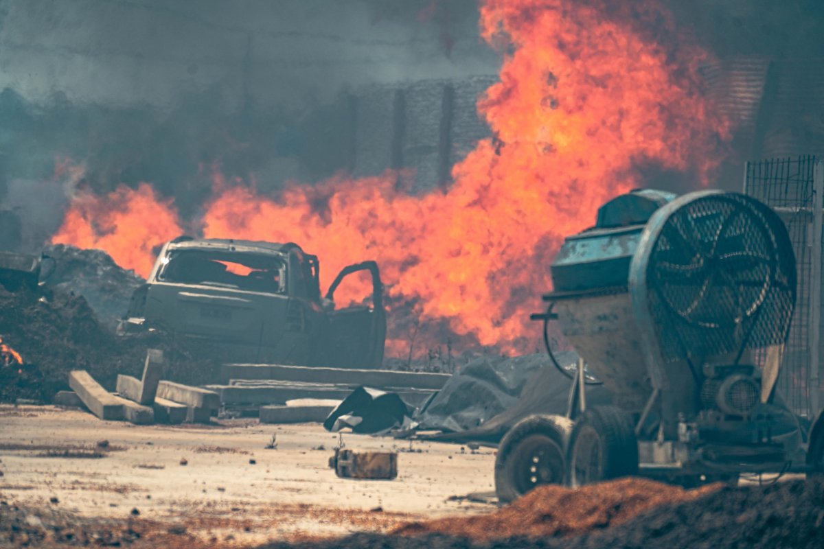 En horas del mediodía de este martes, un importante incendio se registró en un depósito logístico al aire libre ubicado dentro del Clúster del Acceso Sur, a pocos metros de la rotonda del Cristo. El siniestro afectó aproximadamente dos mil metros cuadrados de materiales, entre ellos pallets, cartón prensado y otros elementos, además de un vehículo que también resultó alcanzado por las llamas.