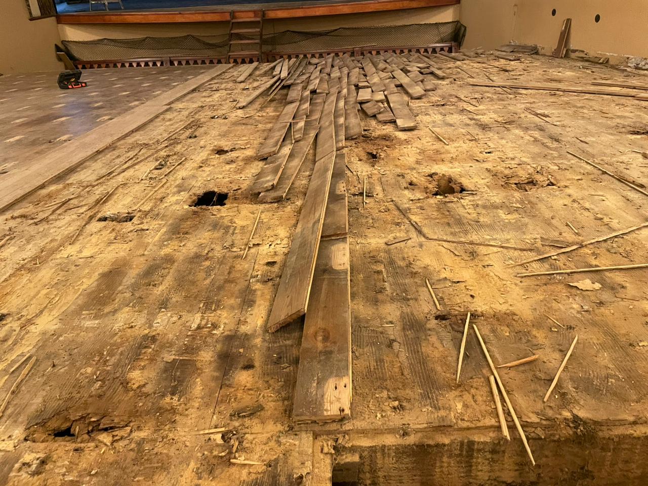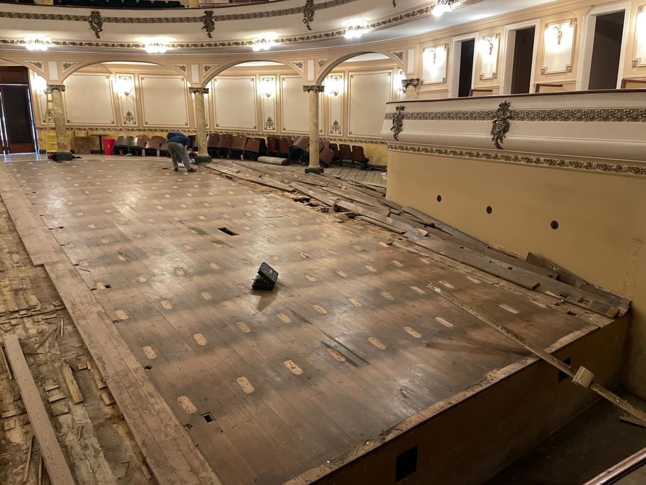 Comenzó la remoción del piso del Teatro Gualeguaychú para reparar toda la estructura