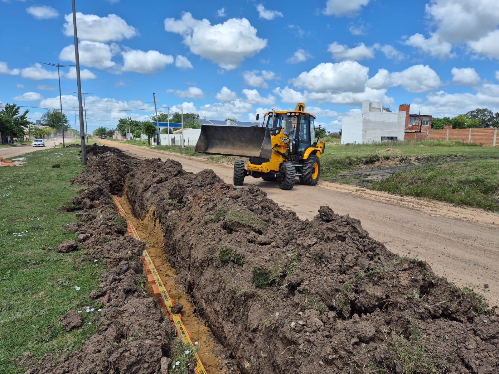 La intervención comenzó con la apertura de zanjas profundas a lo largo del cantero central, en las que se realiza la colocación de los conductores eléctricos subterráneos. Cada tramo de zanjeo es cuidadosamente rellenado con materiales seleccionados y protegido con cintas de señalización de seguridad, tal como lo indican las normativas técnicas vigentes. Este tipo de instalaciones garantiza mayor durabilidad, evita riesgos eléctricos y preserva la estética del entorno al eliminar el tendido aéreo tradicional.