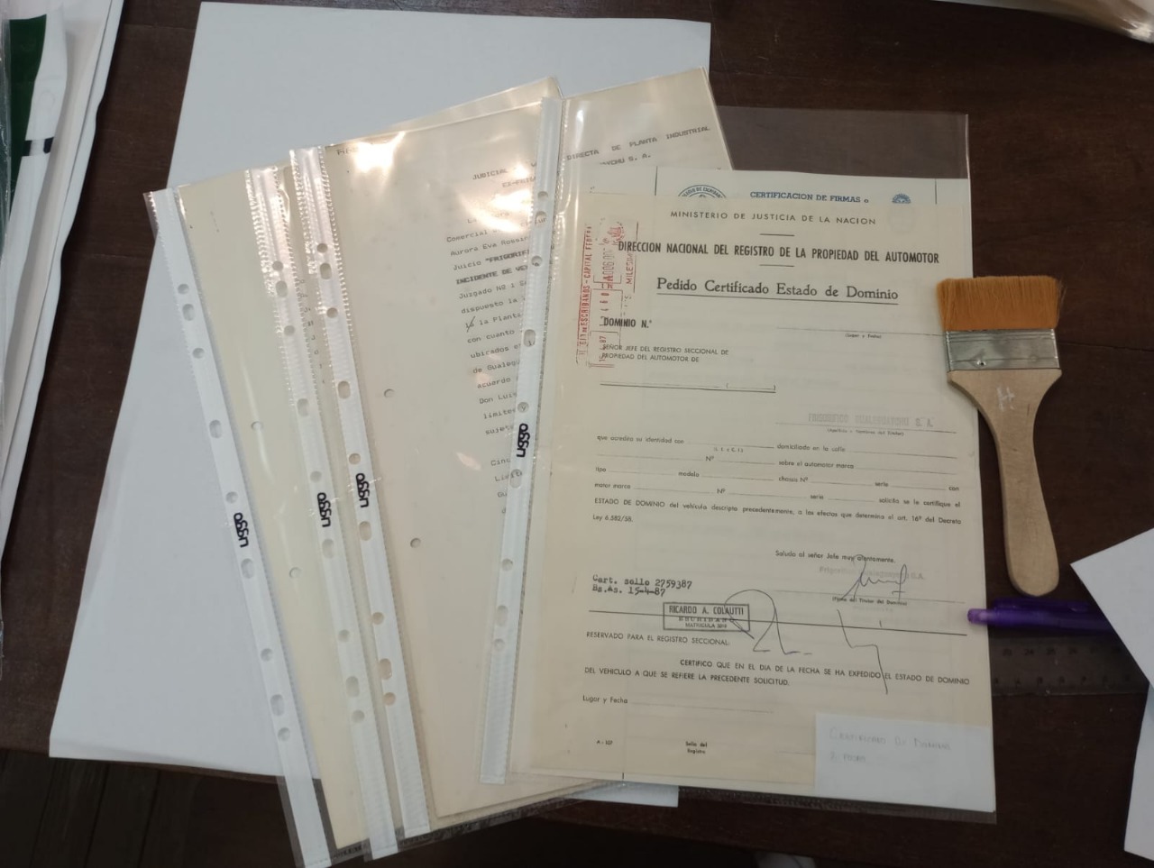 En el Museo de la Memoria Popular, las estudiantes Karen Nyszczczuk y Priscila Cajigas participaron en tareas de conservación del Archivo Ángel Piaggio, recientemente donado a la institución. Allí aplicaron técnicas de limpieza y preservación de documentos, retirando elementos que comprometen su integridad, como ganchos y clips metálicos, y reemplazando contenedores ácidos por materiales adecuados.