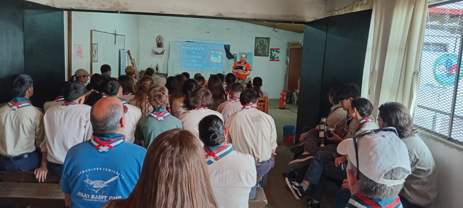 El Director de Defensa Civil, Nicolás Bozzani, llevó adelante una capacitación dirigida a todas las ramas del Grupo Scout Virgen de Guadalupe, con el objetivo de fortalecer los conocimientos sobre prevención y respuesta ante incendios y otras emergencias.