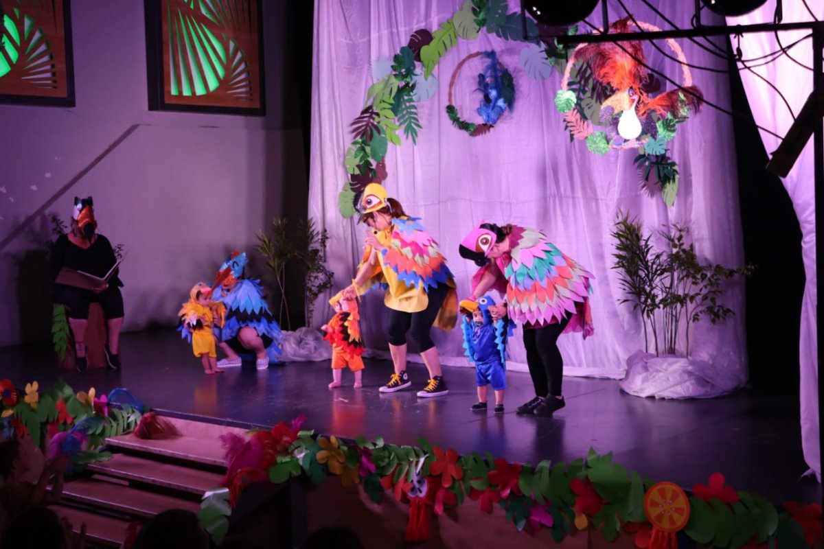Uno de los momentos centrales fue la presentación de la historia del pájaro Pipo, un cuento original creado por las docentes especialmente para este cierre. La narración relató el viaje del pájaro Pipo a Río y fue interpretada por todas las salas del EMPI, con niños disfrazados de pájaros que recrearon vivencias y aprendizajes del año. La sala de tres sumó un baile con música brasileña que aportó color y dinamismo. El cuento dejó como mensaje que cada niño “vuela a su tiempo y a su manera”, resaltando el respeto por los procesos individuales.