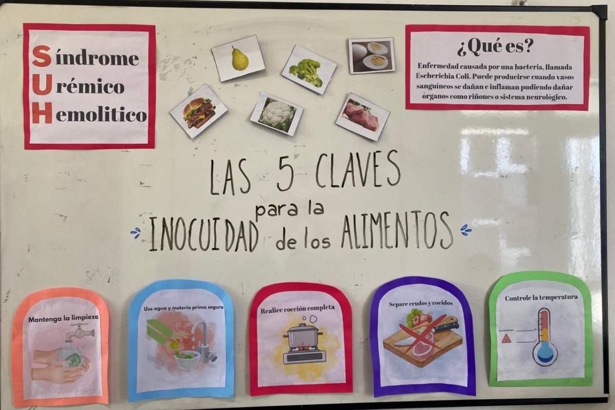 Durante el encuentro, el equipo de salud explicó de manera clara qué es el SUH, cuáles son sus principales vías de transmisión y qué grupos presentan mayor vulnerabilidad, especialmente los niños. También se detallaron los métodos de diagnóstico, las complicaciones más frecuentes y las medidas preventivas esenciales para evitar contagios vinculados al consumo de alimentos contaminados o a prácticas de manipulación inadecuadas.