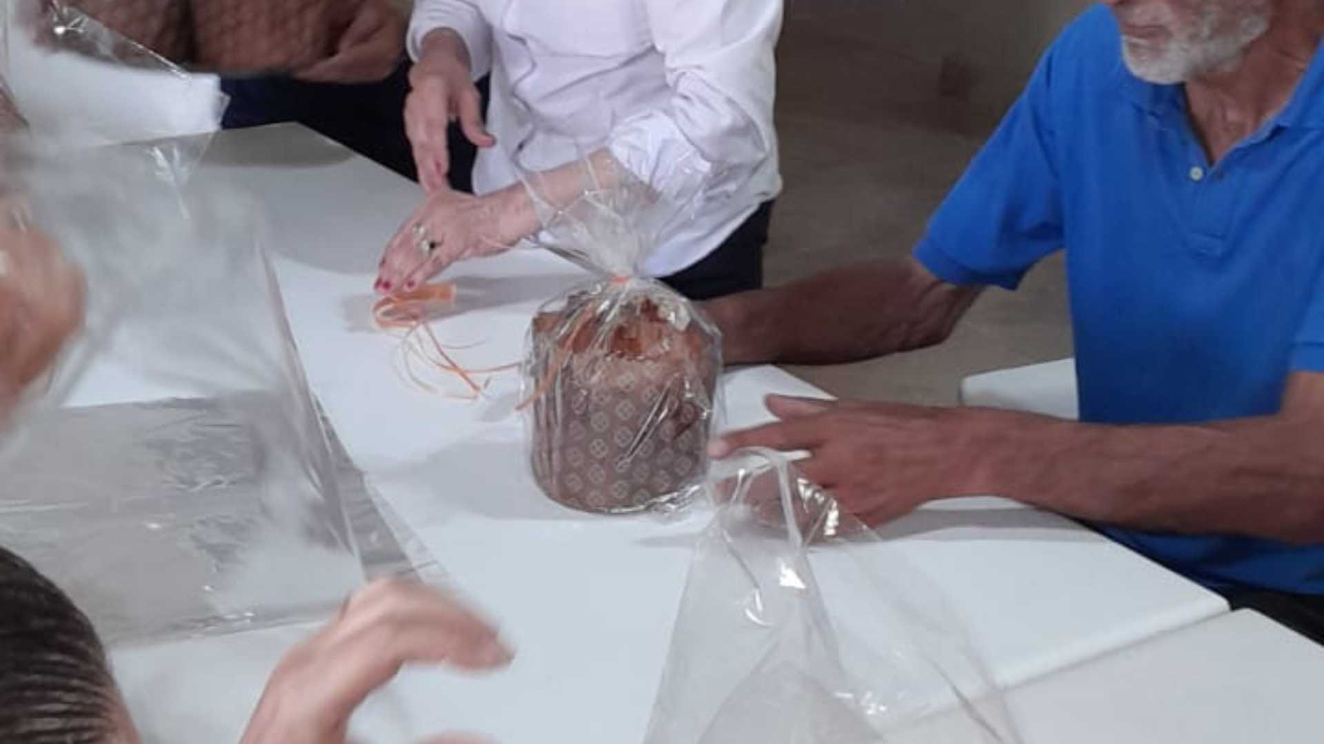 En el Centro Municipal de Día “De Cara al Sol”, otro grupo de adultos mayores participó del envasado y empaquetado de los pan dulces elaborados en el taller “Recetas del Corazón”, impulsado por la Secretaría de Desarrollo Humano.