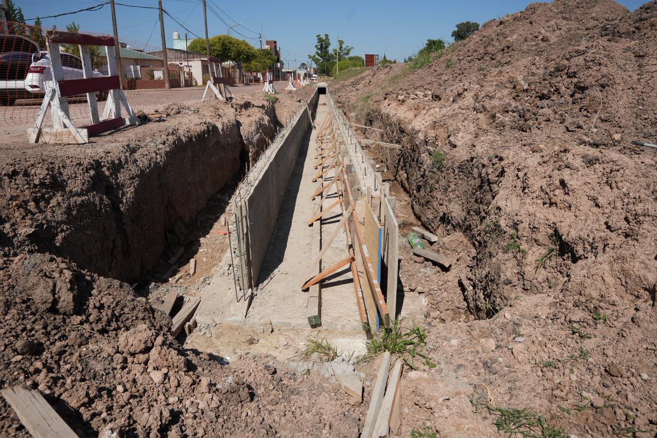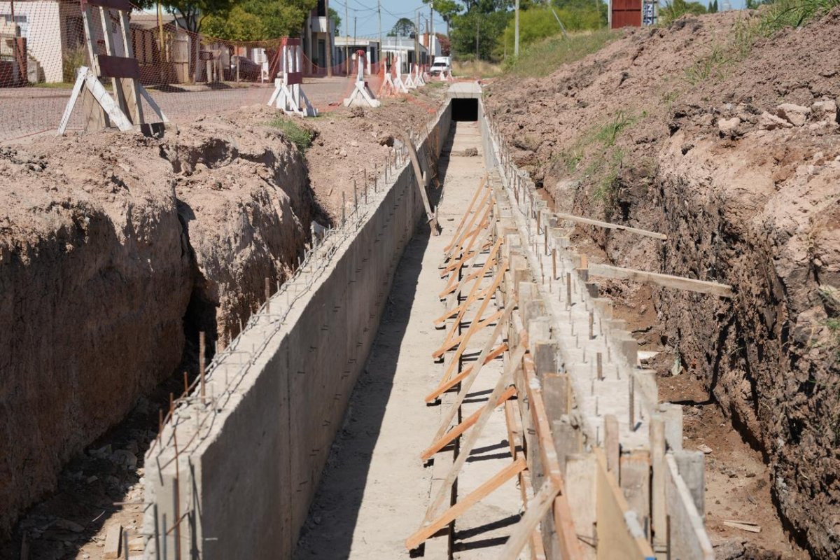 Además, una vez finalizada la construcción del canal principal, se ejecutarán cámaras de captación, cordones cuneta y badenes de hormigón para completar el perfil vial y garantizar el escurrimiento superficial durante las lluvias.