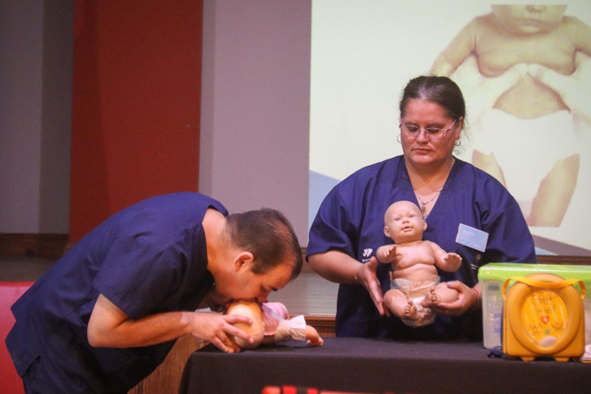 La capacitación estuvo a cargo del licenciado en Enfermería Luciano Gómez y equipo de promotoras de salud, quienes guiaron la jornada a través de una metodología teórico-práctica. Para el desarrollo de los contenidos se utilizaron muñecos de entrenamiento y recursos audiovisuales, lo que permitió a los participantes practicar las maniobras de RCP y comprender de manera clara y dinámica los pasos a seguir ante una emergencia.