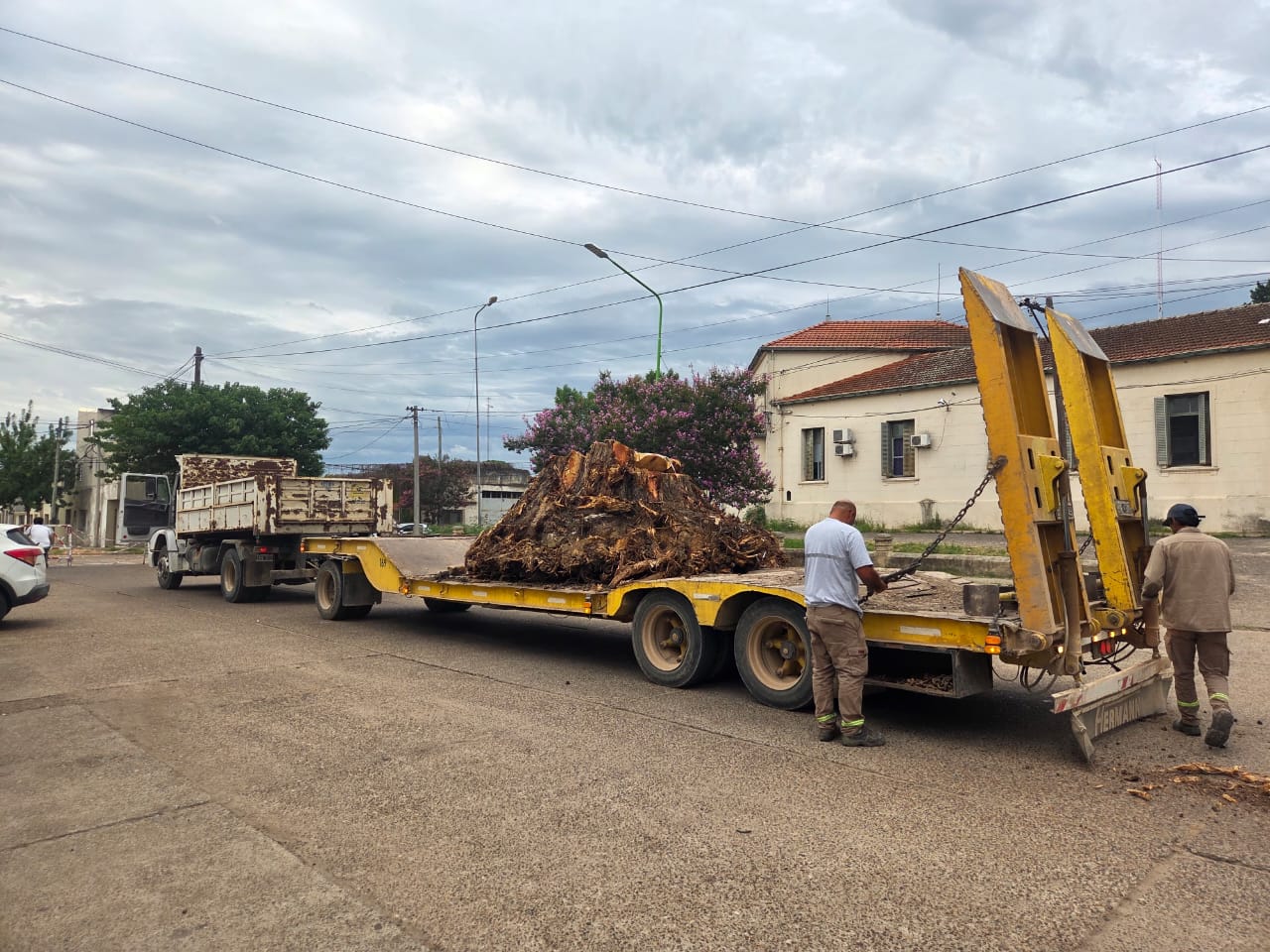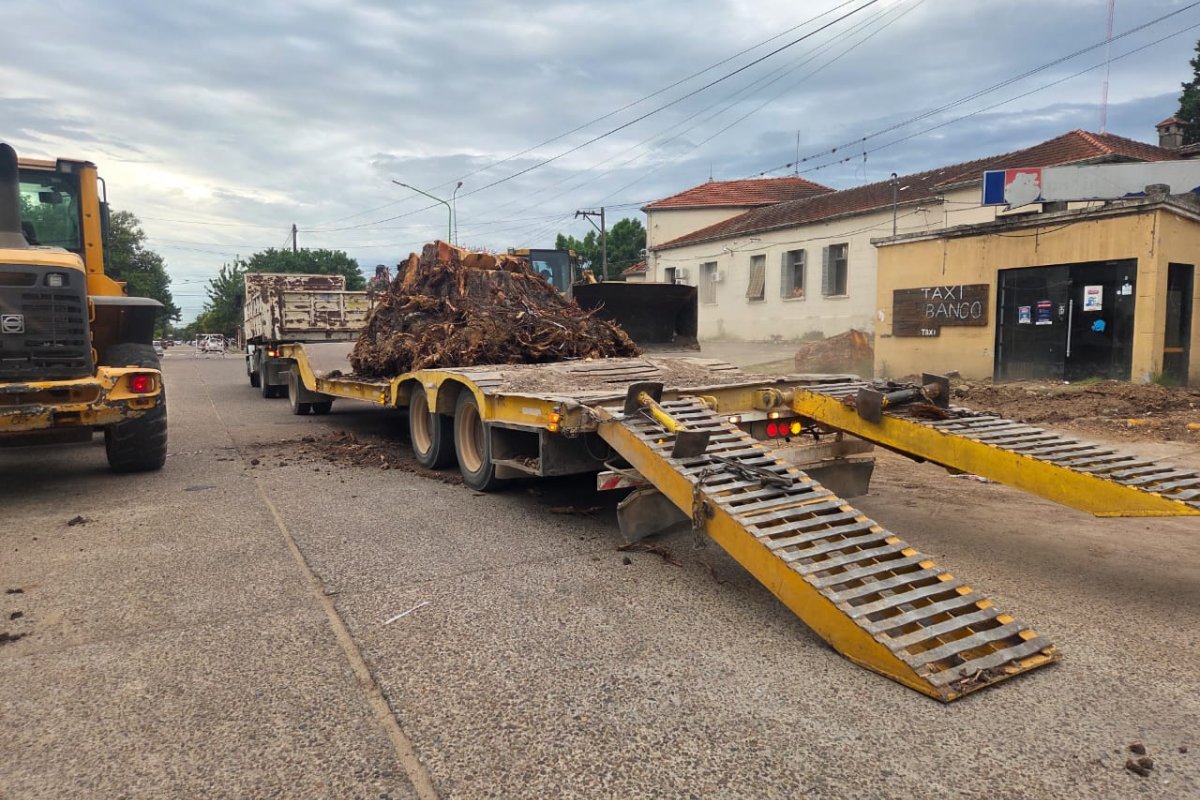 Del procedimiento participaron equipos de las direcciones de Espacios Verdes, Obras Públicas, Tránsito, Defensa Civil y la Cooperativa Eléctrica. Por razones operativas, se interrumpió el tránsito en calle Pasteur, entre Urquiza y San Martín.
