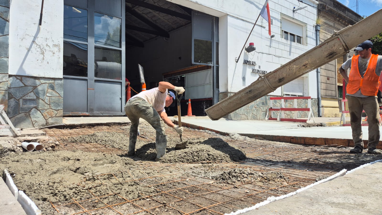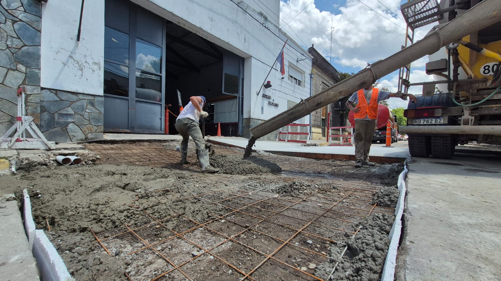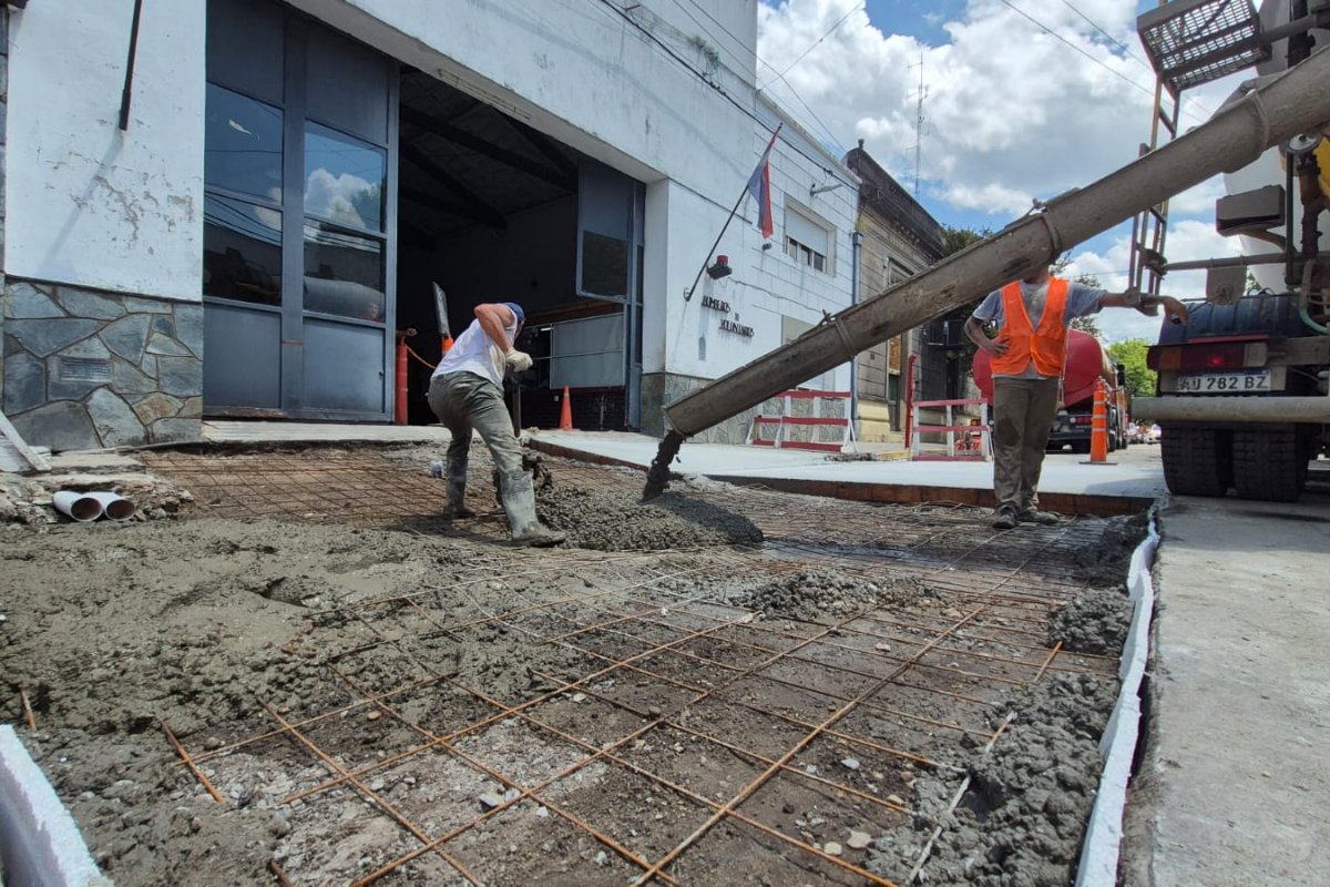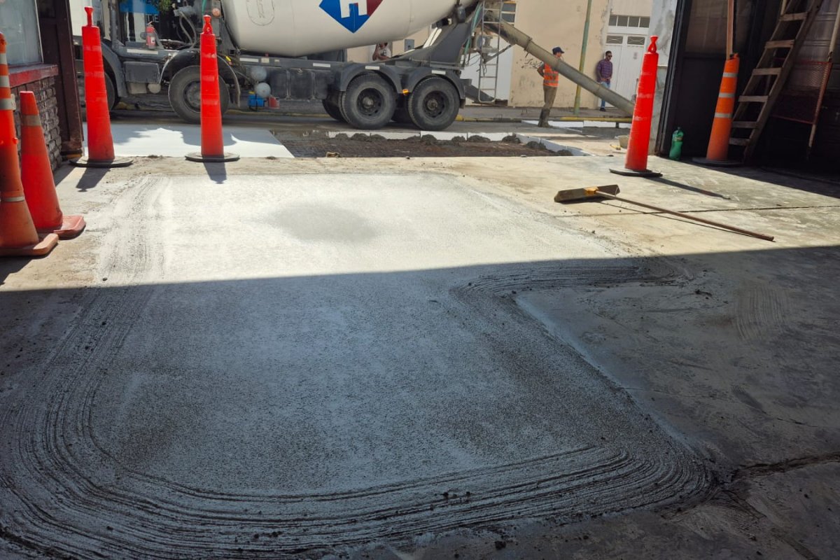 Este martes, el Municipio comenzó con el colocado de hormigón tanto en la rampa de ingreso y exceso, algunos sectores dentro del cuartel y la calzada que se utiliza de calle de salida de las autobombas ante cualquier emergencia.