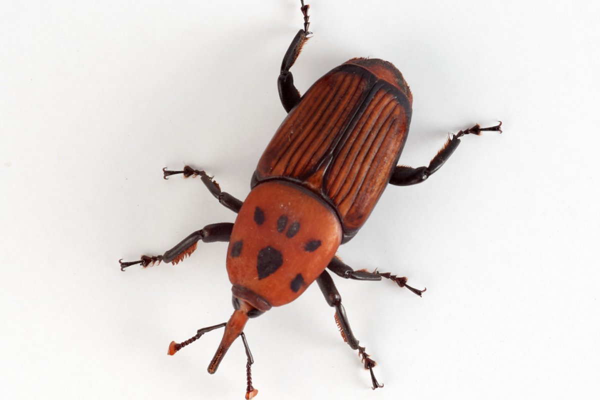 El picudo rojo utiliza a las palmeras como hospedadoras principales para completar su ciclo biológico. Al alimentarse de los tejidos internos del tronco, el insecto avanza hacia el ápice y, en la mayoría de los casos, provoca la muerte del ejemplar. En paralelo, el picudo negro también comienza a generar daños visibles, especialmente en palmeras del tipo Phoenix canariensis, como las emblemáticas que se encuentran en calle Rocamora.