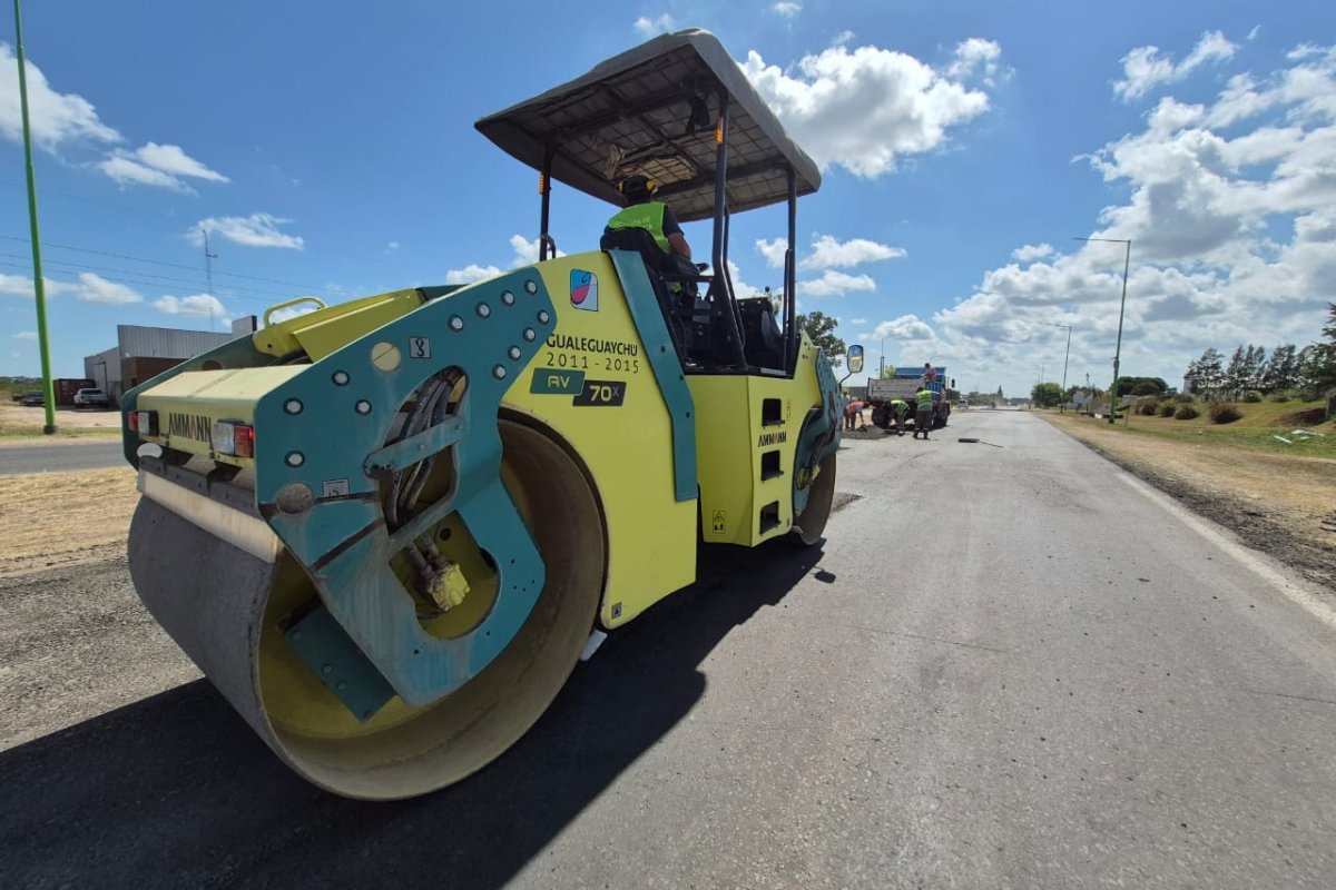 El Gobierno de Gualeguaychú avanza con la restauración de la calzada del Acceso Sur, uno de los corredores viales de mayor circulación y principal puerta de entrada a la ciudad, mediante una intervención que comprende tareas de fresado y bacheo superficial con mezcla asfáltica en caliente sobre las trochas más afectadas del trazado.