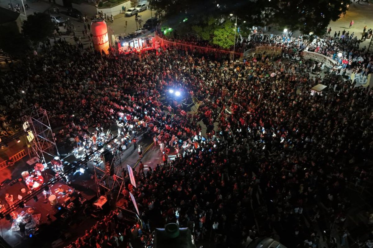 Con sillas, reposeras, o simplemente parado, el público ocupó todo el corredor desde Los Obeliscos hasta la Plaza Almeida (explaza Colón) disfrutando del espectáculo, único en la ciudad, que englobó a las batucadas Los Pibes, Las Audaces, Batería Aplanadora y Sonido de Parche; a pasistas y a Toque de Samba.