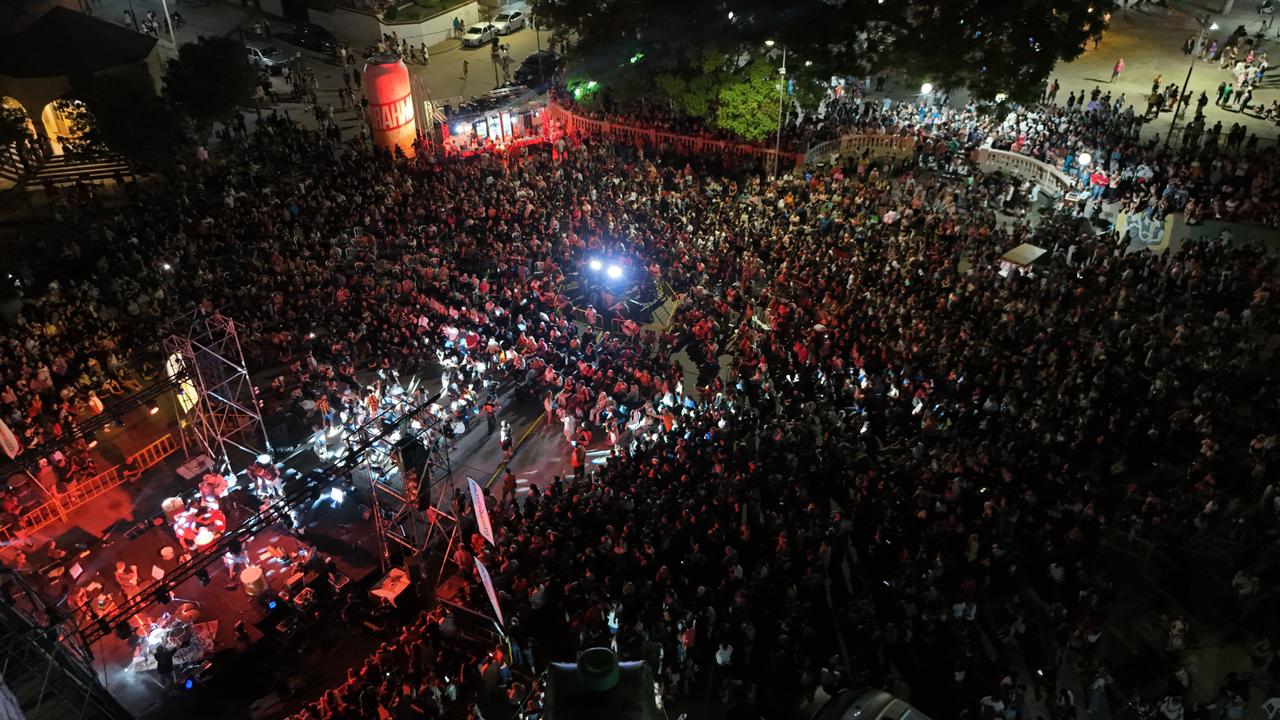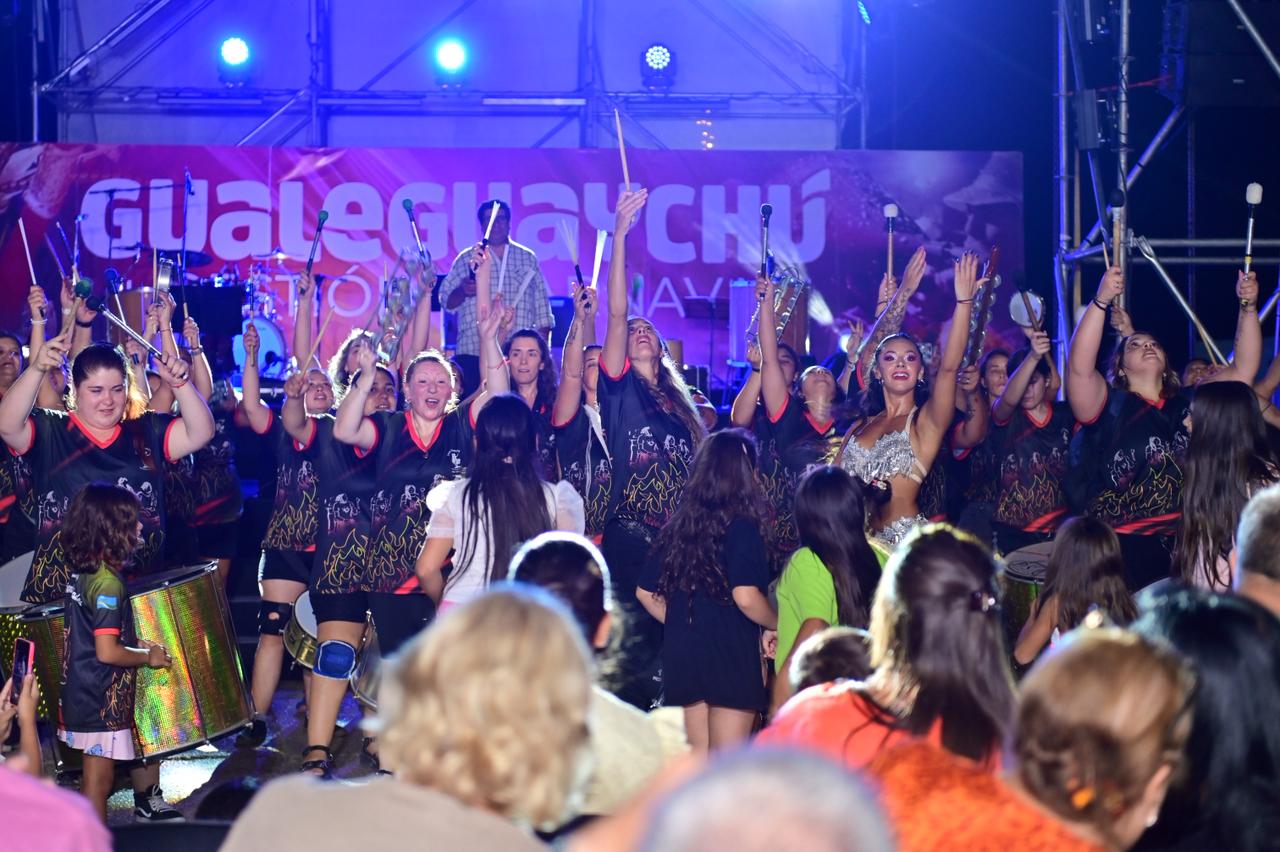La apertura estuvo a cargo de la Batucada Los Pibes; luego fue el turno de Las Audaces; más tarde se presentó Batería Aplanadora y el cierre lo realizó Sonido de Parche. Las pasistas invitadas, Martina Ghiglia y Rosario Sánchez, junto a pasistas de la comparsa Amancay de Urdinarrain, aportaron brillo y cercanía, bailando junto a decenas de niños que imitaban cada movimiento a pocos metros del escenario, mientras Toque de Samba hizo cantar al público con cada una de sus canciones.