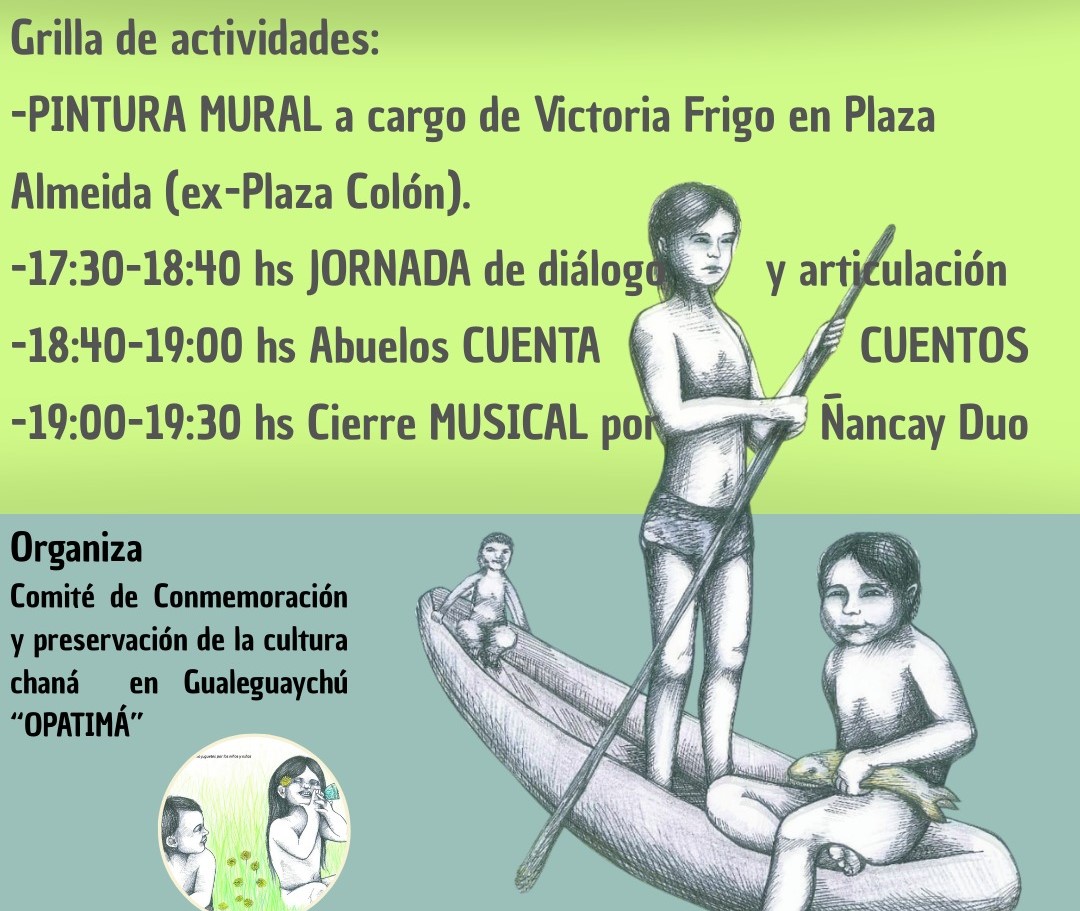 Se realizará una pintura mural en vivo, correspondiente a la tercera imagen de la secuencia “OyeNdén”, a cargo de Victoria Friggo. Además, habrá una jornada de reflexión y articulación en torno a la Ordenanza n.º 12.840/2023 (Expte. 7469/2023), vinculada a la preservación y difusión de la cultura Chaná en Gualeguaychú, con un balance a tres años de su firma y su proyección a futuro.