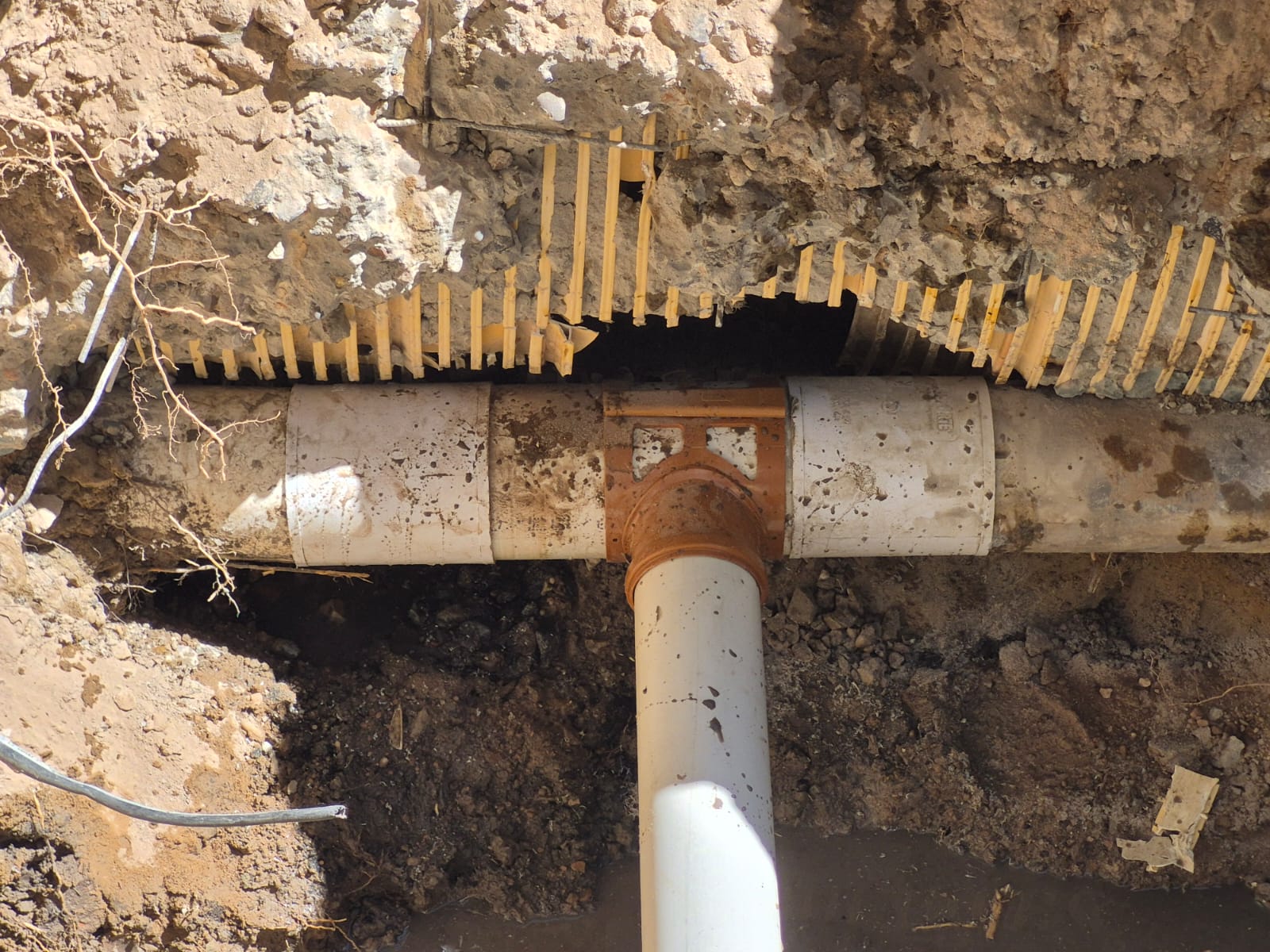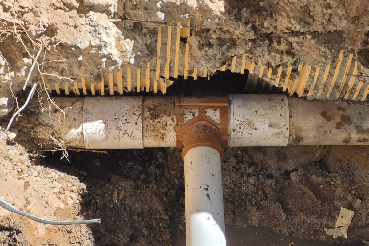 La reparación del caño principal incluyó la sustitución de segmentos deteriorados y la correcta vinculación de las piezas mediante uniones selladas, lo que restituyó la integridad estructural del conducto y garantizó la separación efectiva entre ambos sistemas.