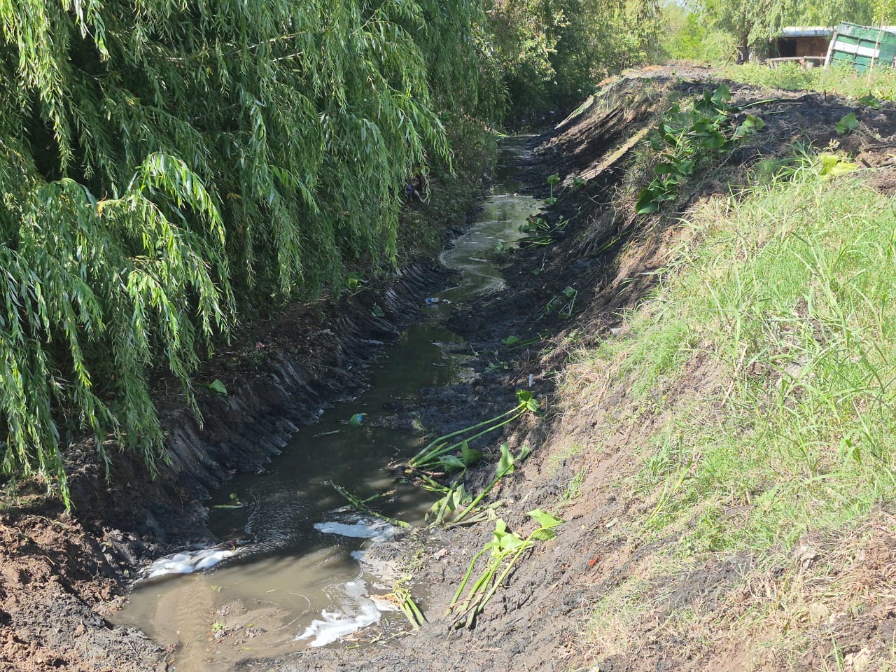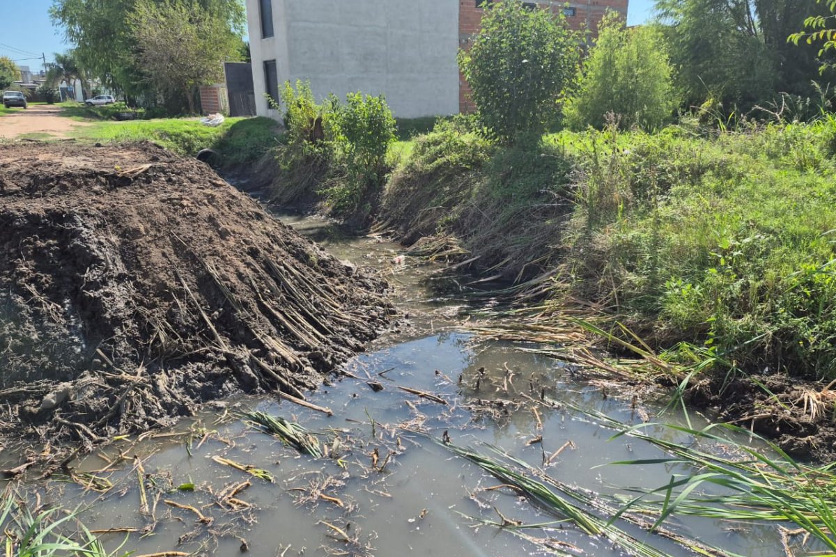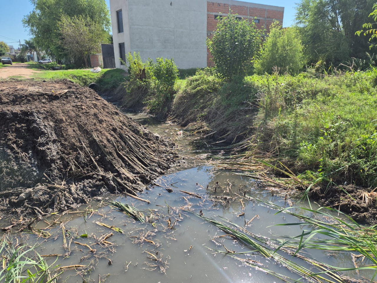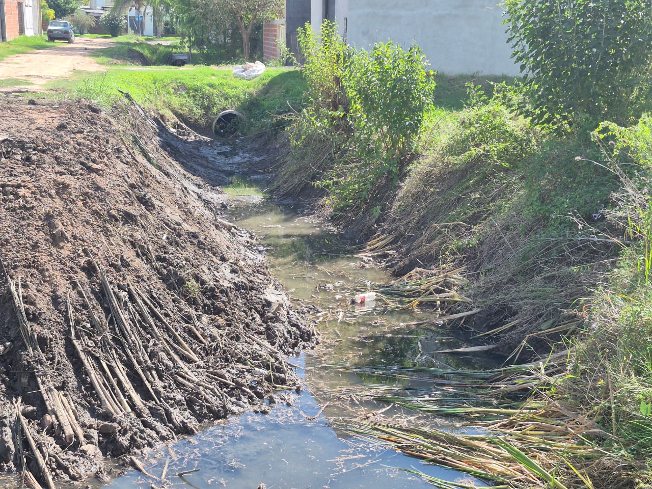 El estado previo del sector evidenciaba un cauce estrechado por depósitos de lodo y vegetación acuática, con agua de escasa circulación y sectores de estancamiento; a partir de las tareas en curso, la traza recupera profundidad y continuidad, con taludes más definidos y un lecho despejado que mejora la velocidad del flujo y disminuye la probabilidad de desbordes en eventos de lluvia.