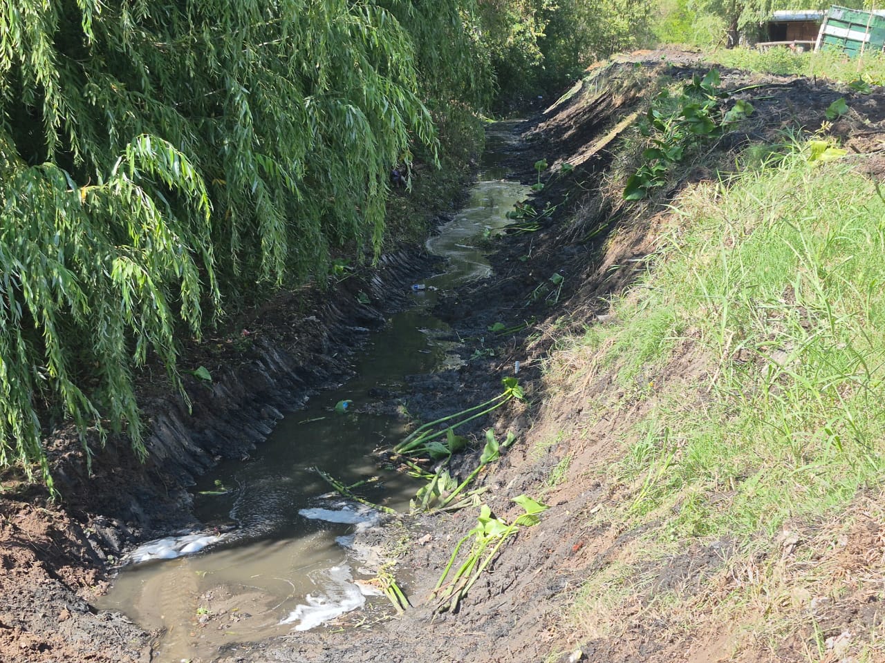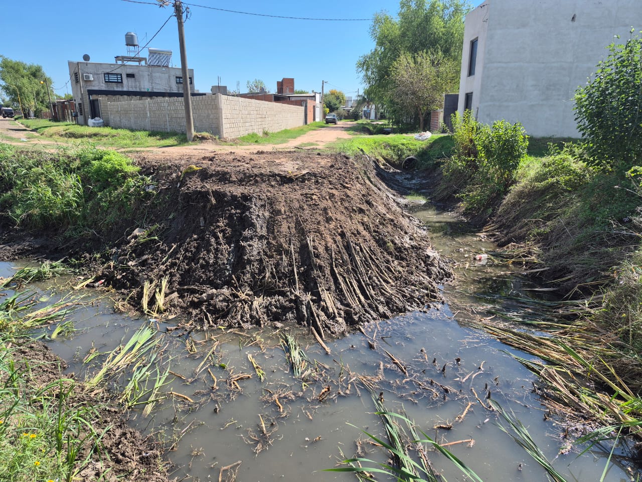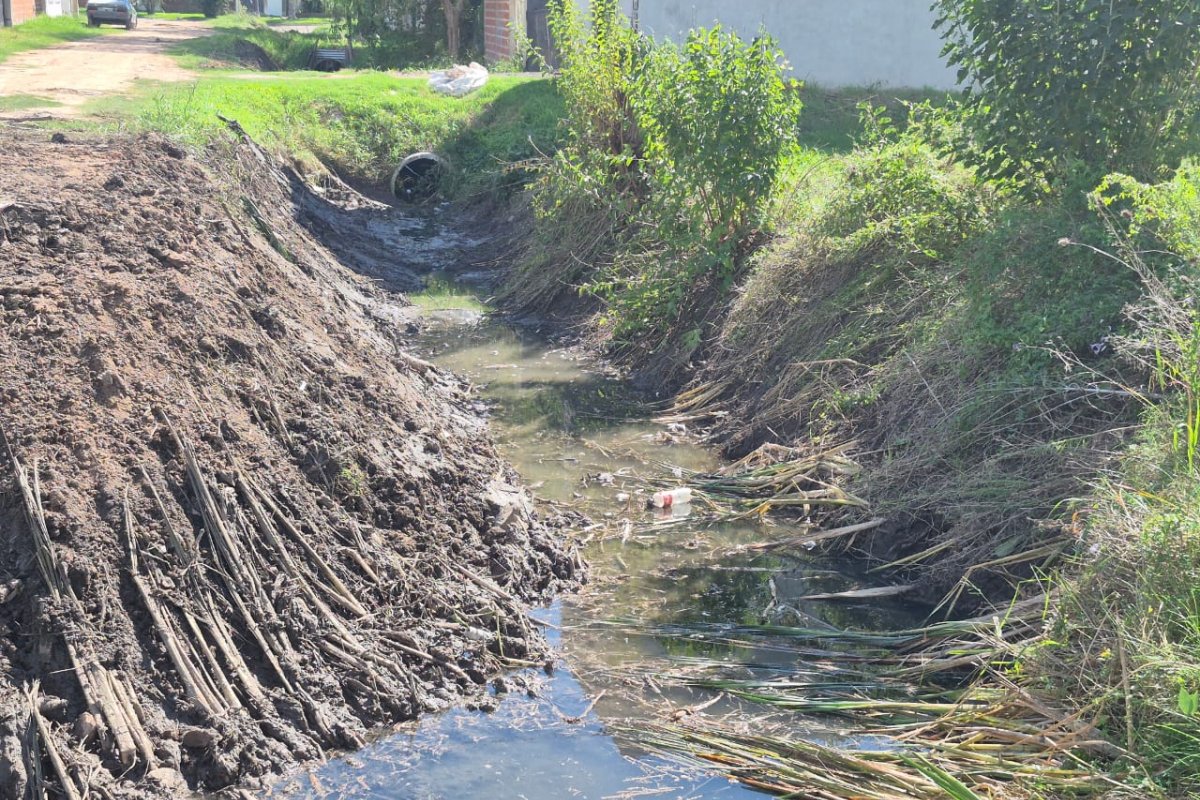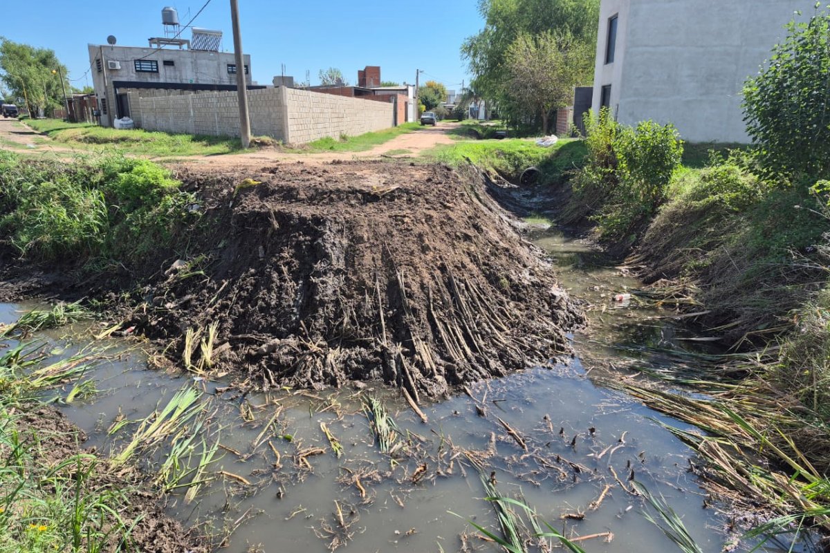 El estado previo del sector evidenciaba un cauce estrechado por depósitos de lodo y vegetación acuática, con agua de escasa circulación y sectores de estancamiento; a partir de las tareas en curso, la traza recupera profundidad y continuidad, con taludes más definidos y un lecho despejado que mejora la velocidad del flujo y disminuye la probabilidad de desbordes en eventos de lluvia.