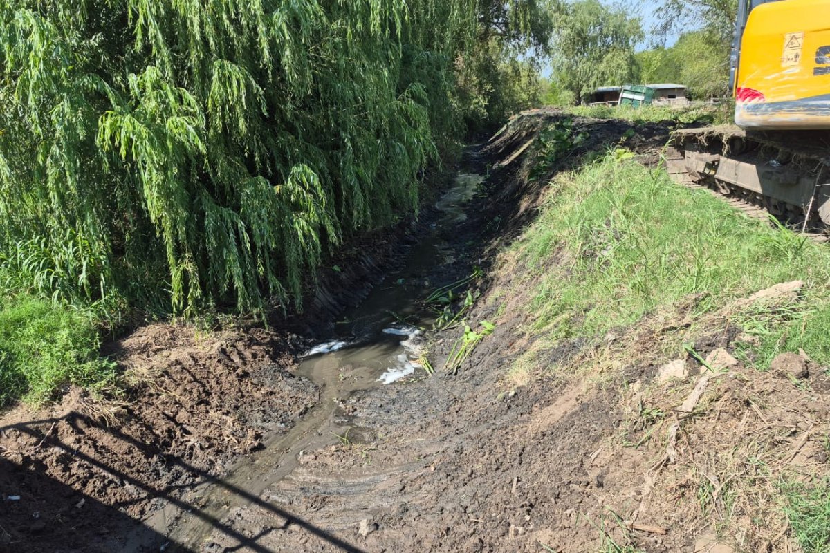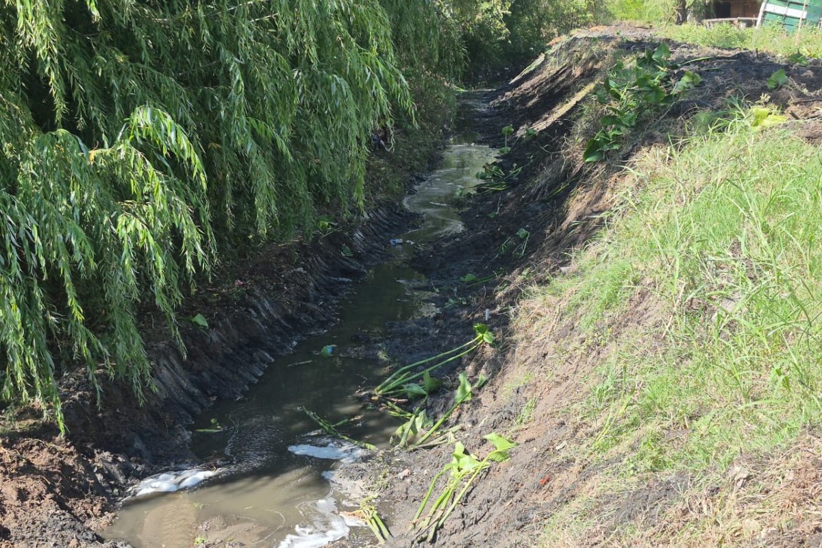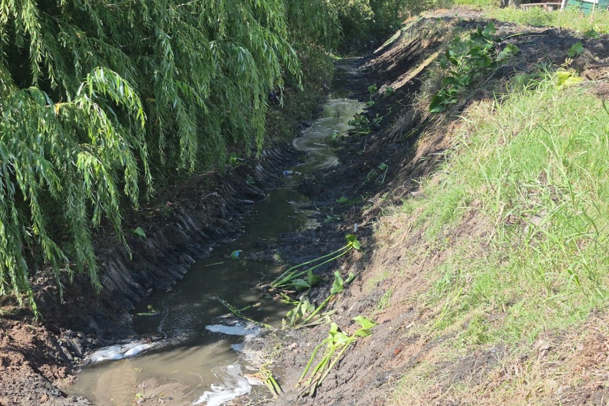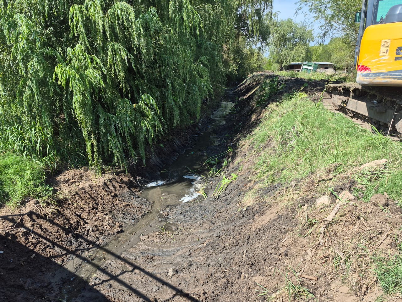 El estado previo del sector evidenciaba un cauce estrechado por depósitos de lodo y vegetación acuática, con agua de escasa circulación y sectores de estancamiento; a partir de las tareas en curso, la traza recupera profundidad y continuidad, con taludes más definidos y un lecho despejado que mejora la velocidad del flujo y disminuye la probabilidad de desbordes en eventos de lluvia.