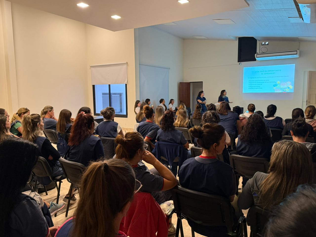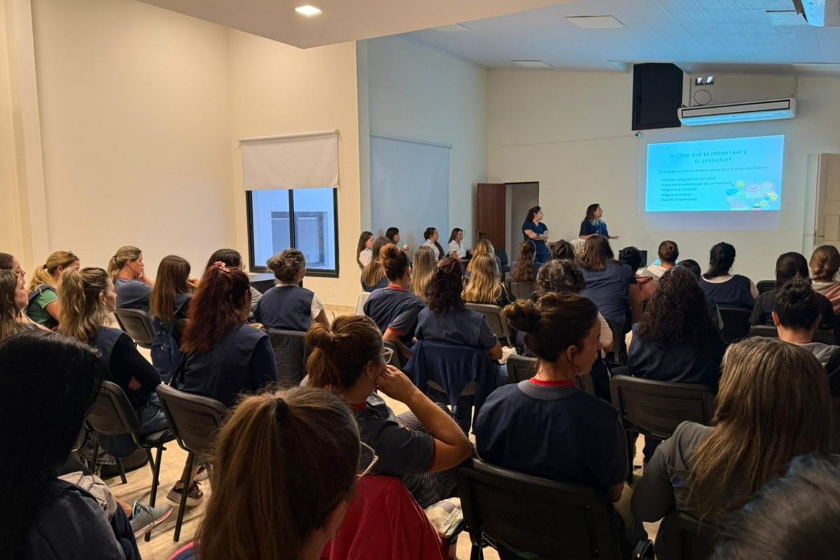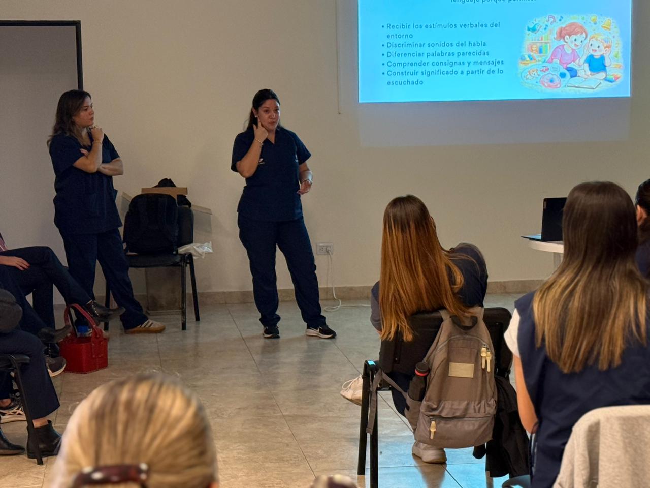 La propuesta se desarrolló durante la jornada de ayer y estuvo a cargo del equipo de fonoaudiólogas de los EMPI, integrado por las licenciadas Victoria Nieto y Paula Brun. Durante el encuentro se compartieron contenidos teóricos y herramientas prácticas orientadas a enriquecer el trabajo cotidiano en las salas, promoviendo intervenciones acordes a las necesidades de la primera infancia.
